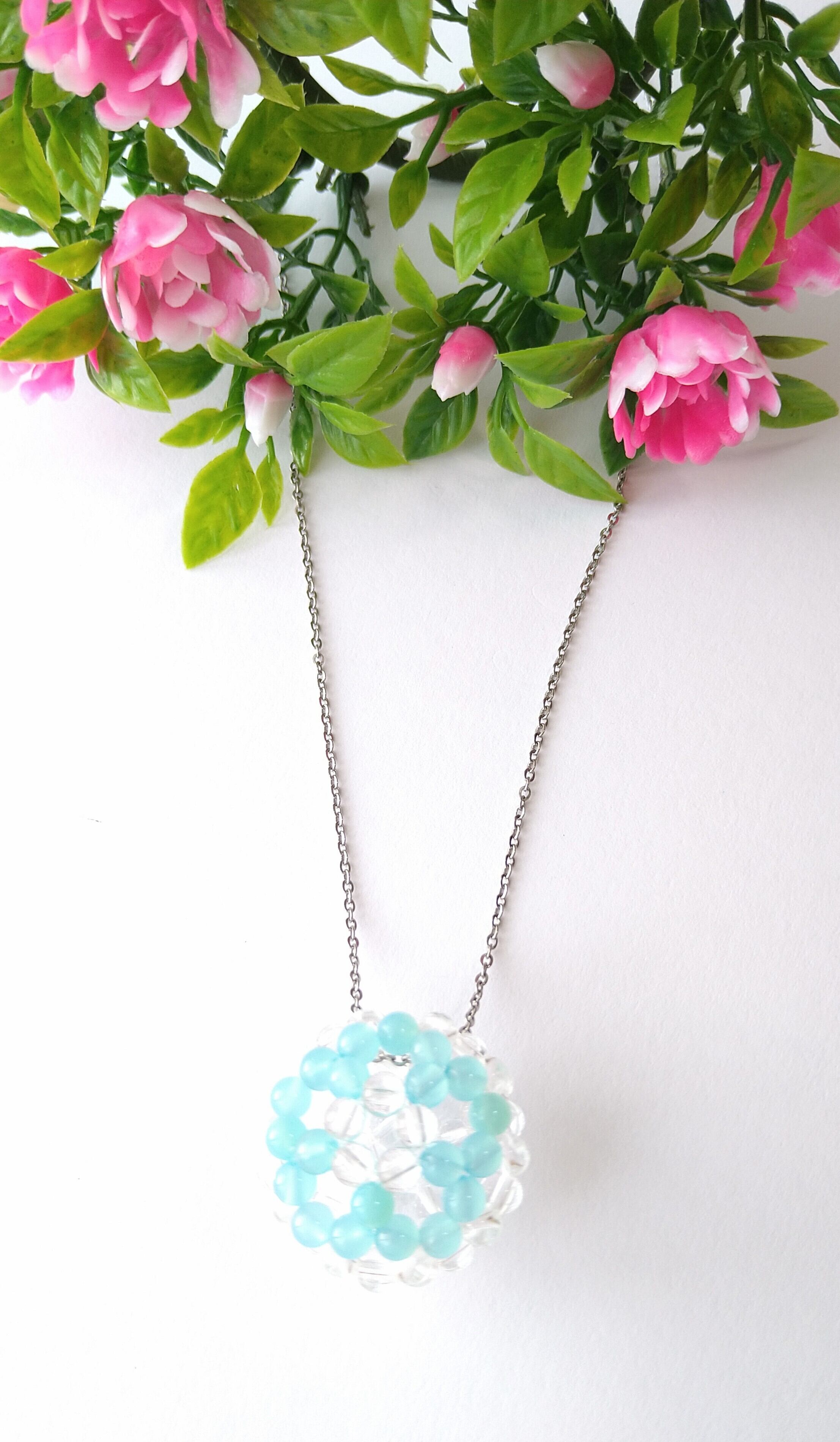 ブルーカルセドニー×水晶 4mmを使用したお花柄フラーレン♡