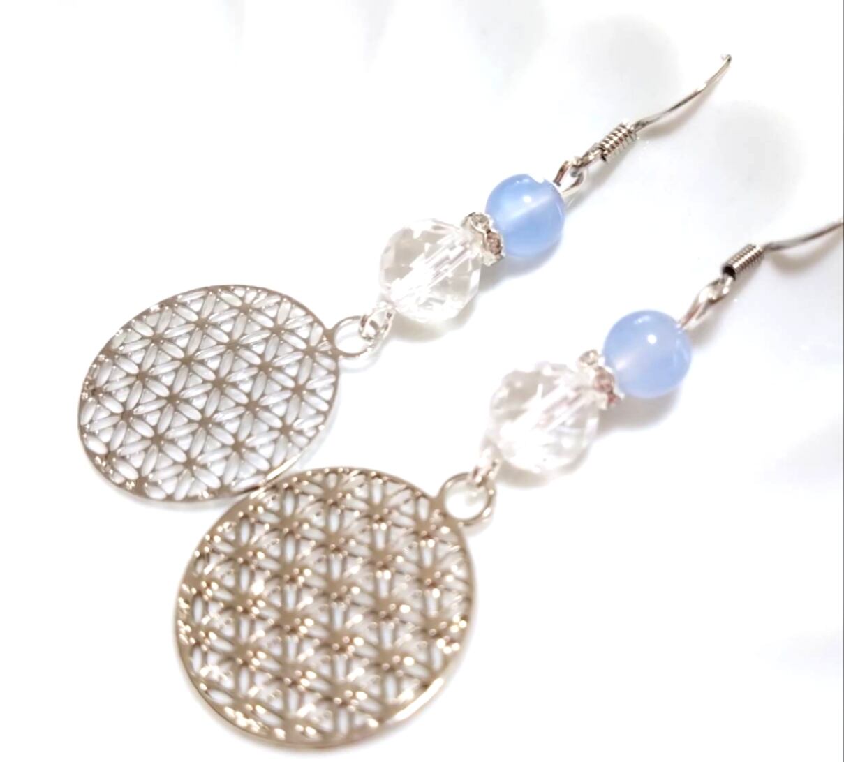 フラワーオブライフチャーム付き ブルーカルセドニー ピアス•イヤリング