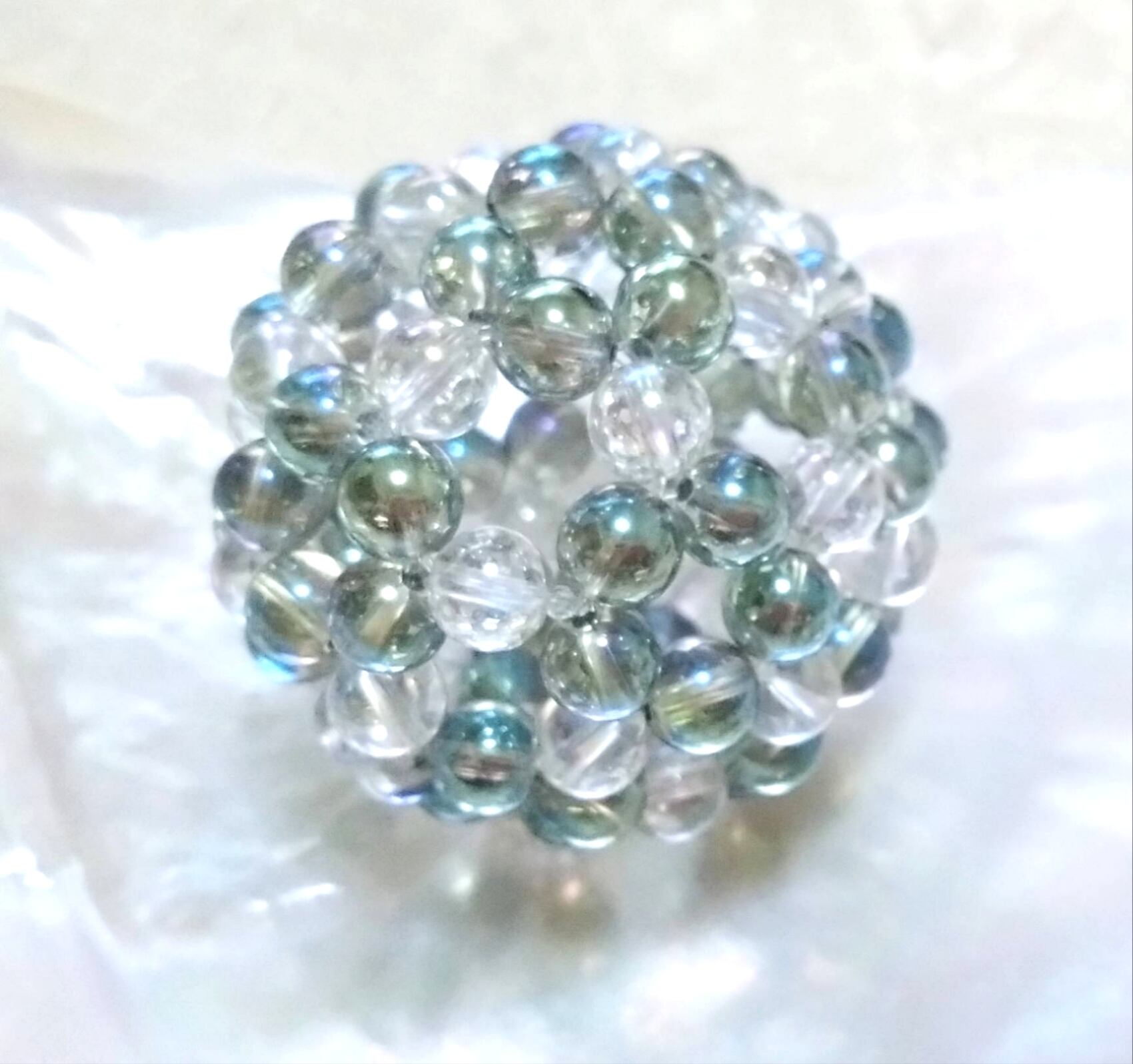 グリーンアクアオーラ×水晶 神聖幾何学フラーレン