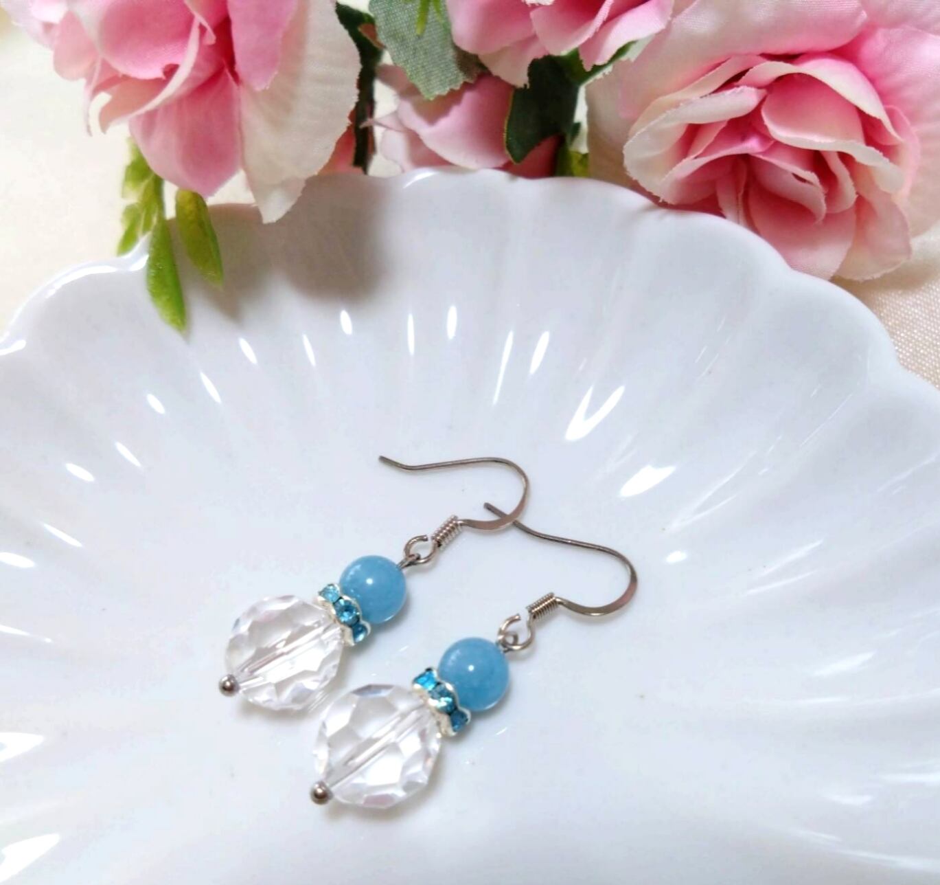 バッキーボール水晶×アクアマリン ピアス•イヤリング