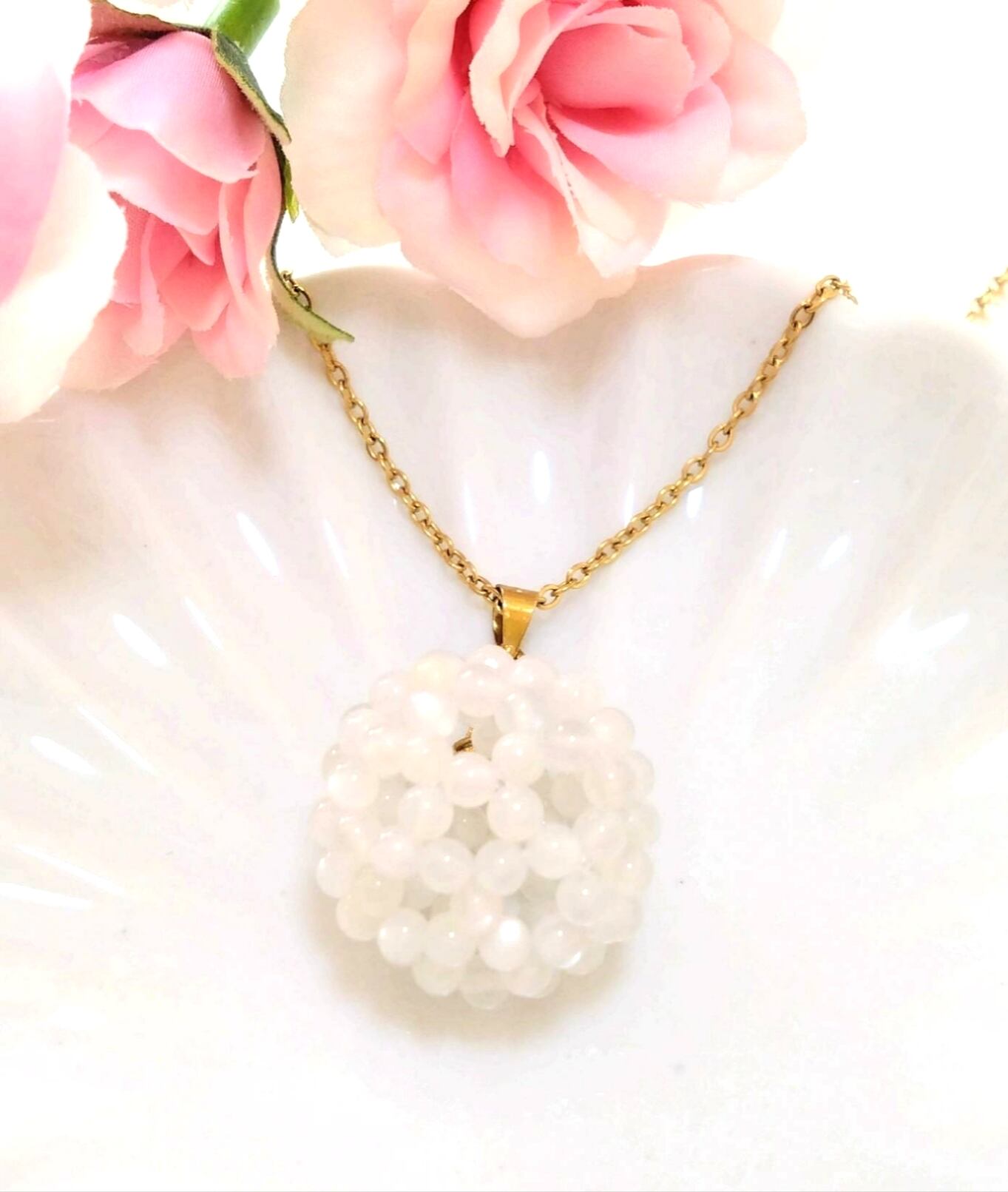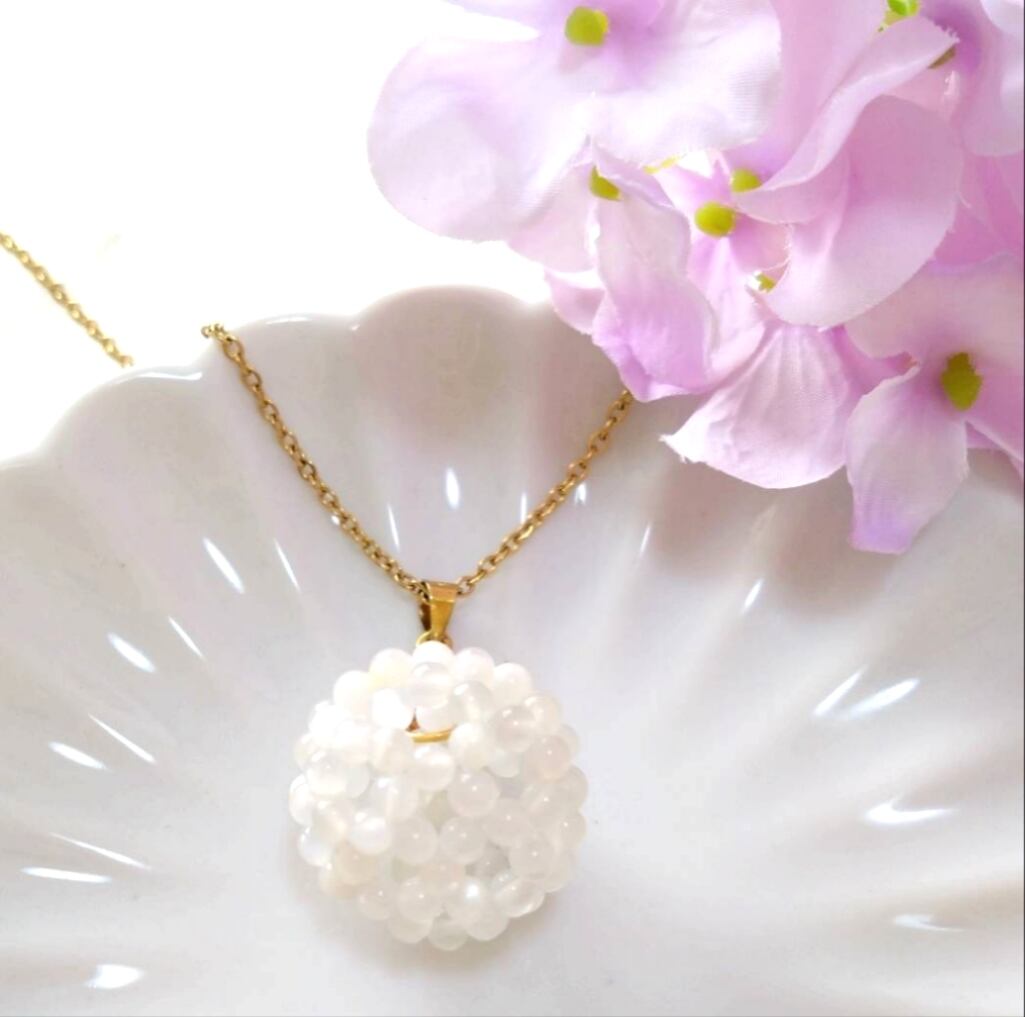 ホワイトムーンストーン神聖幾何学フラーレンネックレス